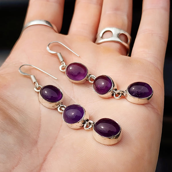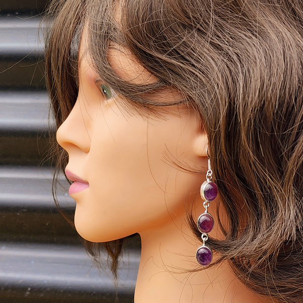 925 Sterling Silver & Natural Amethyst Handmade Hanging Earrings