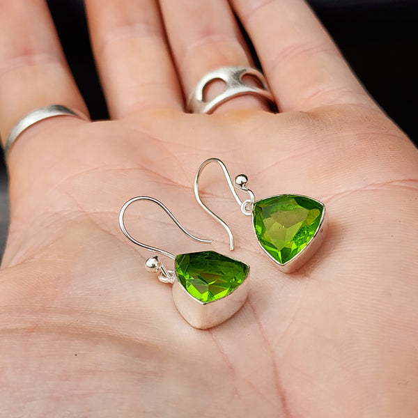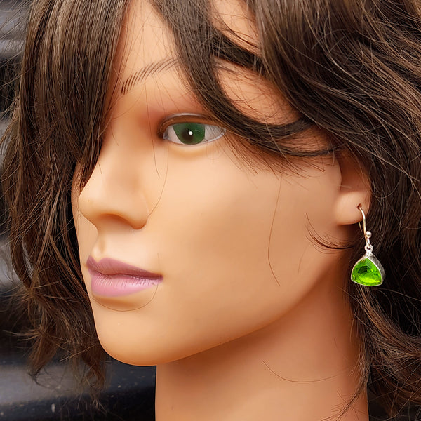 925 Sterling Silver & Natural Peridot Handmade Trillion Cut Hook Earrings