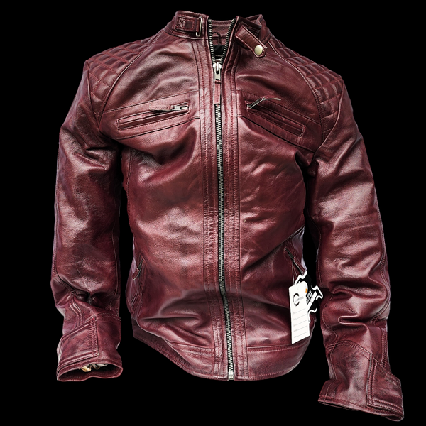 Crimson Brawler - Mens REAL Genuine Leather Jacket - Burgundy Quilted Shoulders