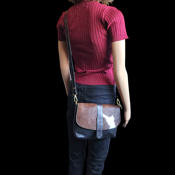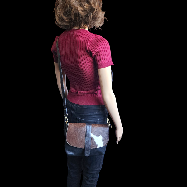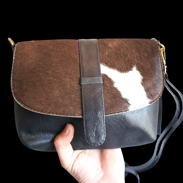 Genuine Leather & Cow Hair Handbag Shoulder Bag - Black & Cow Hair