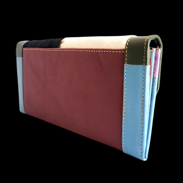 Description: Natural REAL leather & cow hair purse, multi compartments + zipper coin pocket