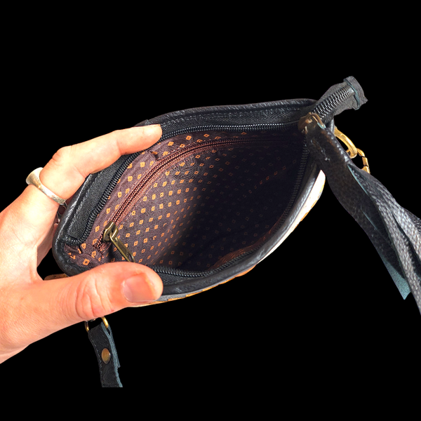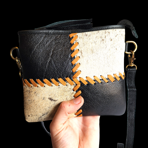 Genuine Leather & Cow Hair Patchwork Shoulder Bag - Black, Tan, Cow Hair