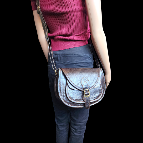 Description: REAL leather Handbag, front pocket, main pocket + inside zip pocket