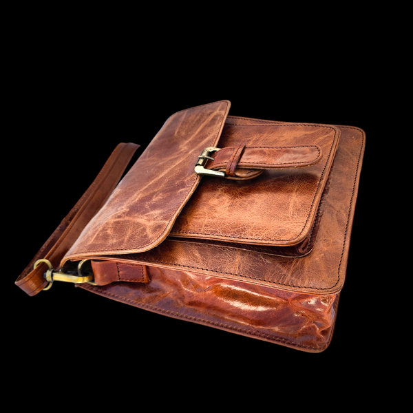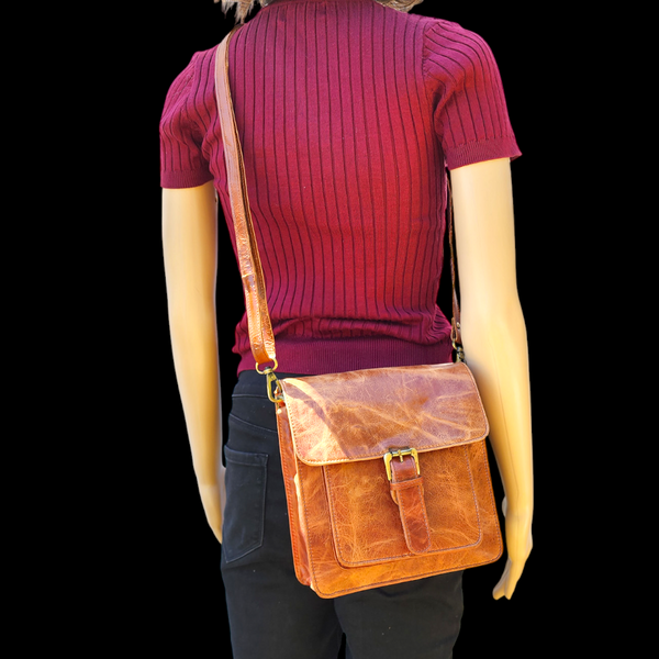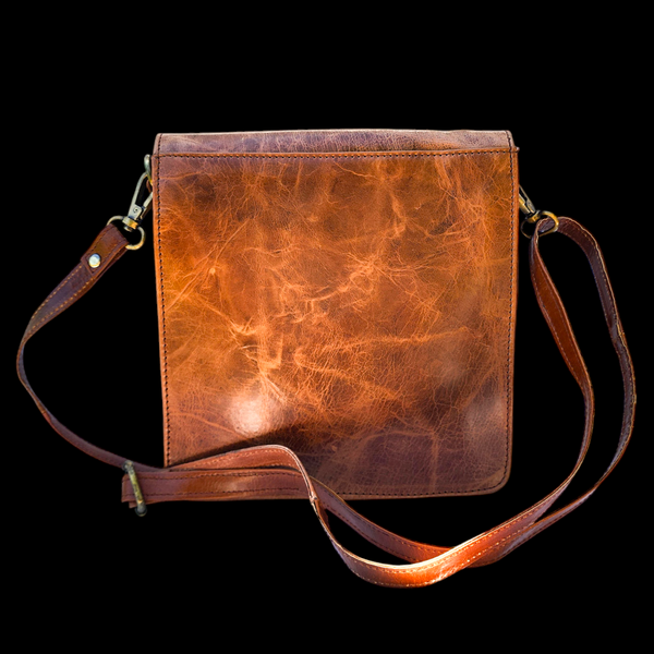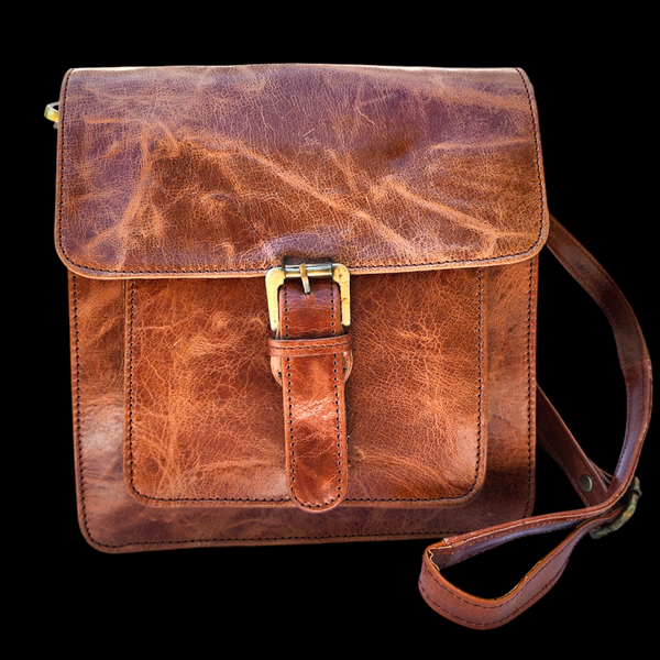 Description: Natural REAL leather shoulder bag, front pocket, main pocket + inside zip pocket