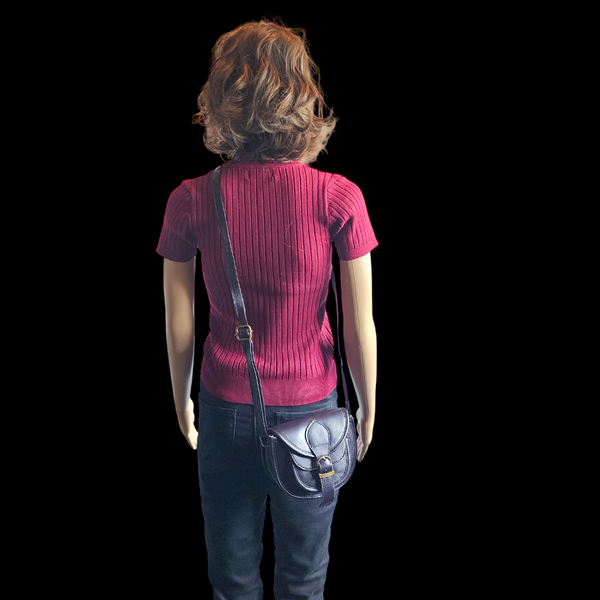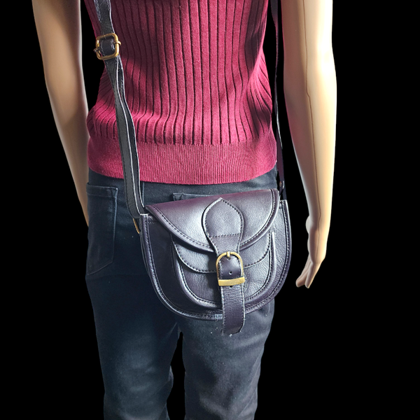 Description: REAL leather small rounded handbag - front pocket, main pocket + inside zip pocket