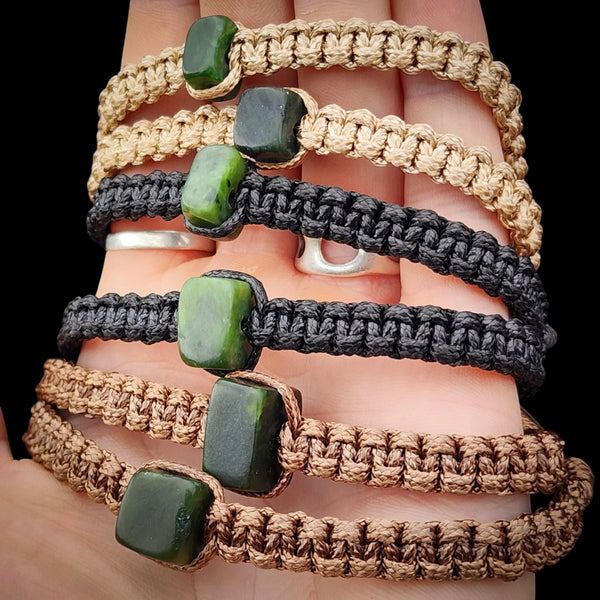 NZ Greenstone Pounamu Macrame Cube Bracelets