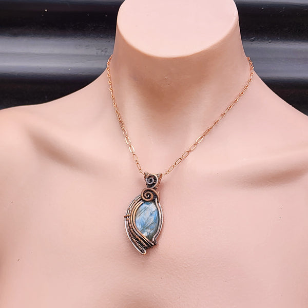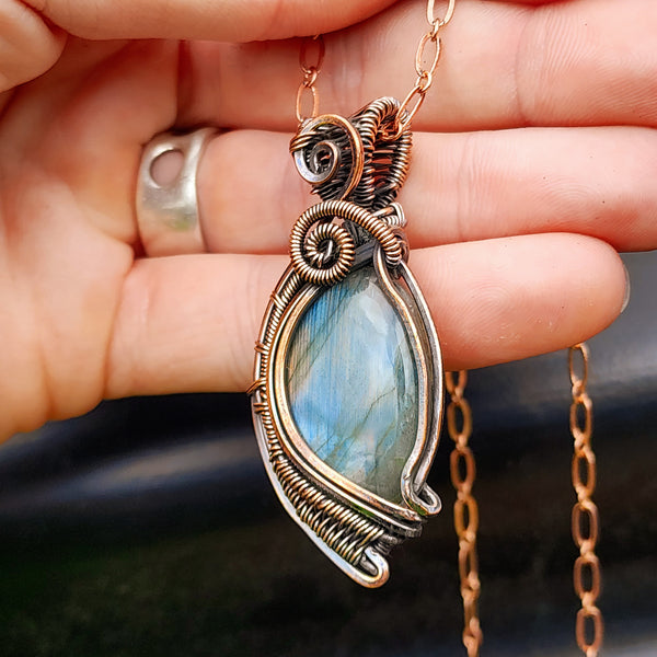 Handmade Copper & Natural Labradorite Wire Wrap Necklace