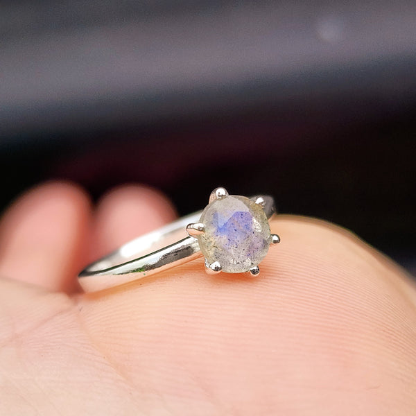 Description: Genuine solid 925 sterling silver & natural Moonstone handmade small clawed ring