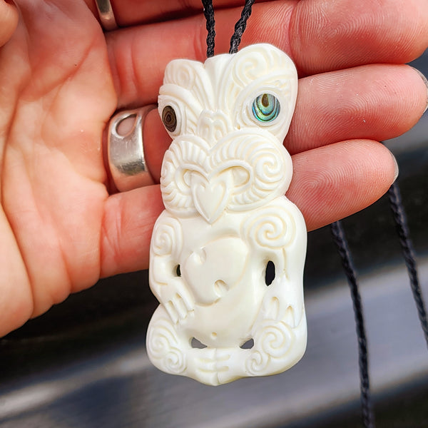 Natural Carved Maori Bone Carving Pendant Necklace - Large Tiki