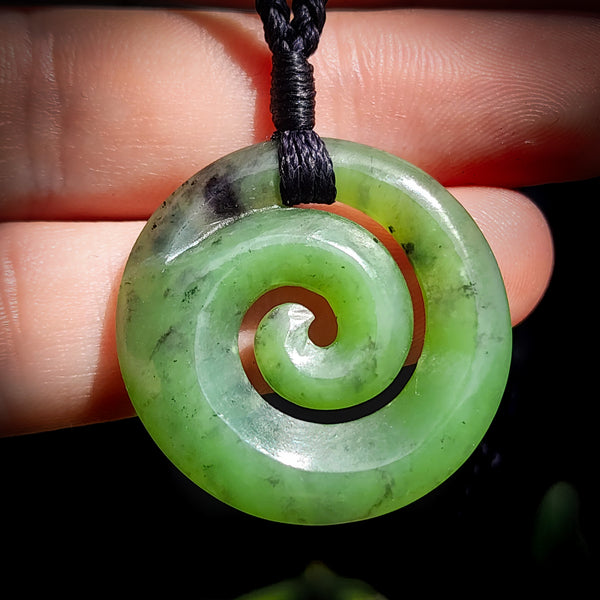 Description: Natural Nephrite Greenstone carved Koru pendant necklace