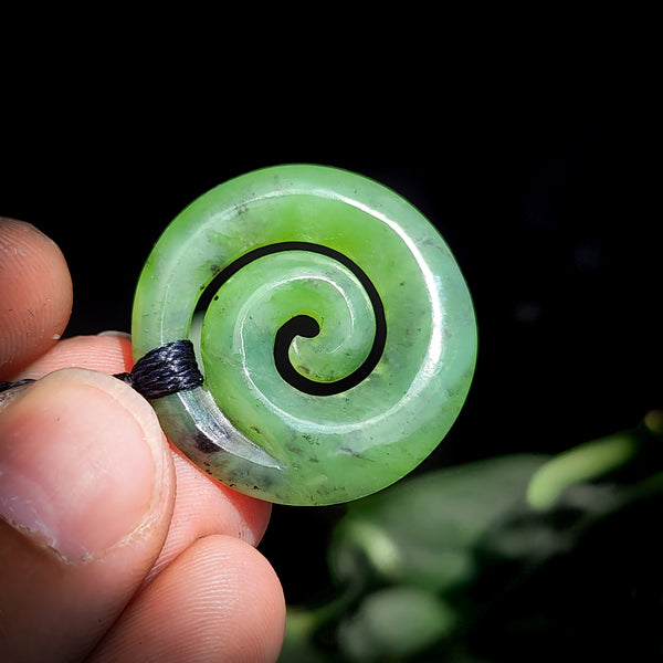 Nephrite Jade / Greenstone Carved Koru Pendant Necklace (N507)