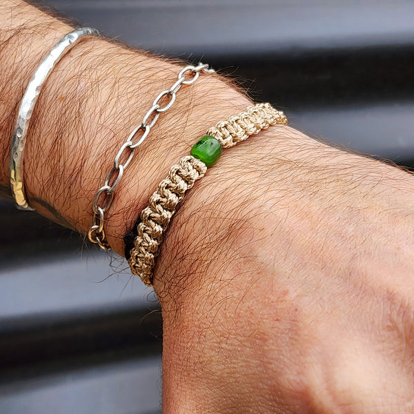 Nephrite Jade / Greenstone One Off Macrame Bracelet (1A3-804)