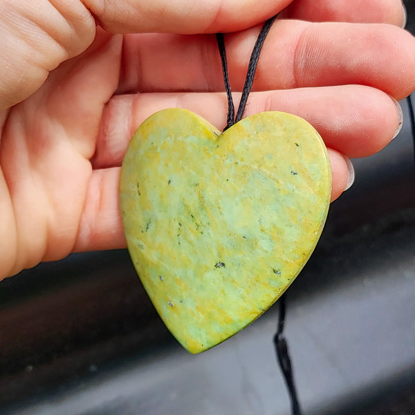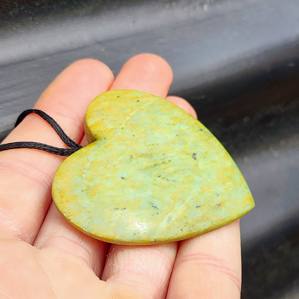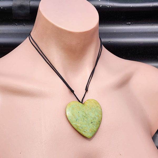 NZ Greenstone Pounamu Heart Pendant Necklace (N404)