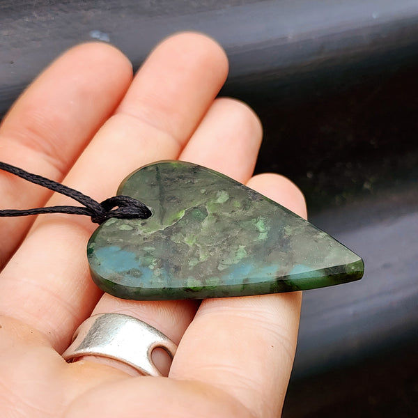 NZ Greenstone Pounamu Heart Pendant Necklace (N434)