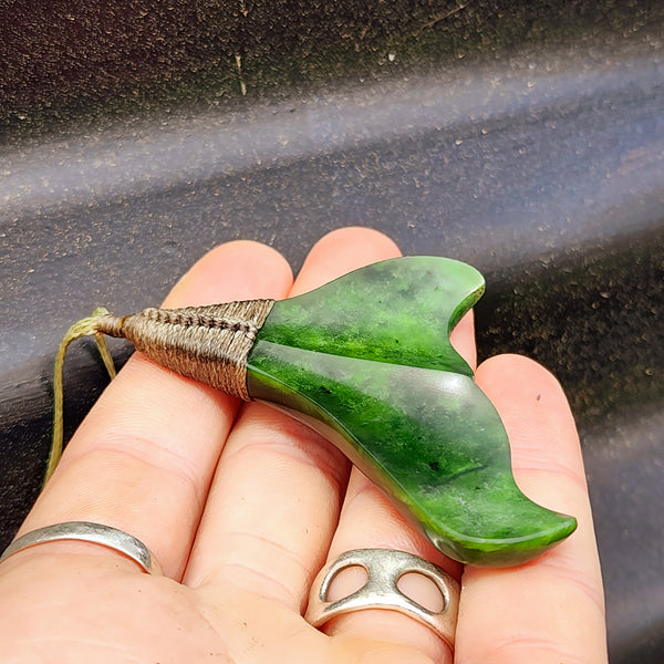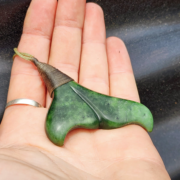 NZ Greenstone Pounamu Whale Tail Pendant Necklace (N459)