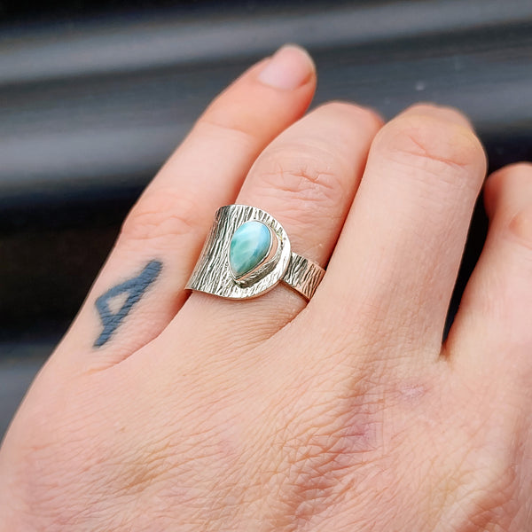 (T) Solid 925 Sterling Silver & Natural Larimar Textured Rustic Handmade Ring