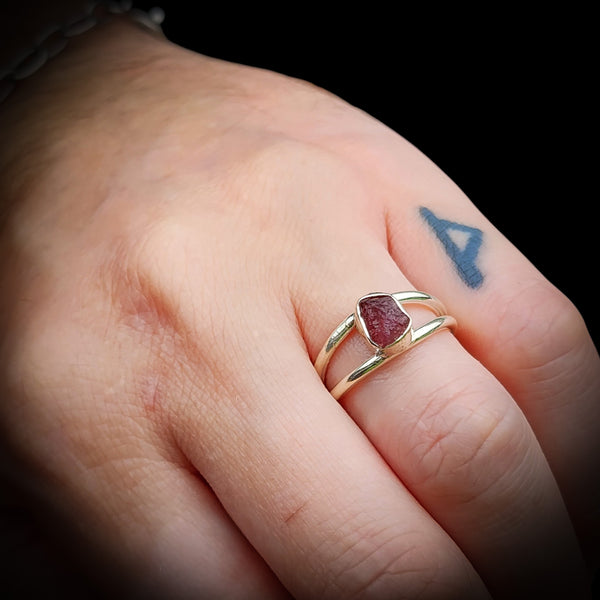 Description: Solid 925 sterling silver & natural raw pink tourmaline handmade double band ring