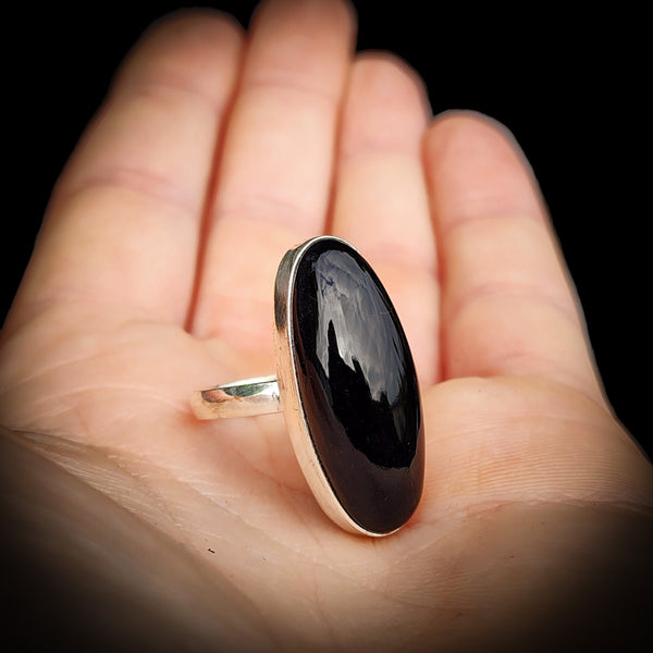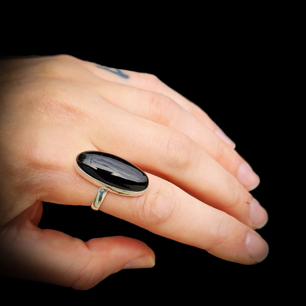 Solid 925 Sterling Silver & Long Oval Black Onyx Handmade Solitaire Ring