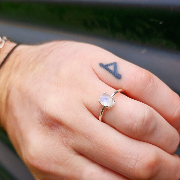 Description: Genuine solid 925 sterling silver & natural Moonstone clawed oval handmade ring