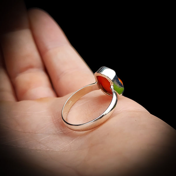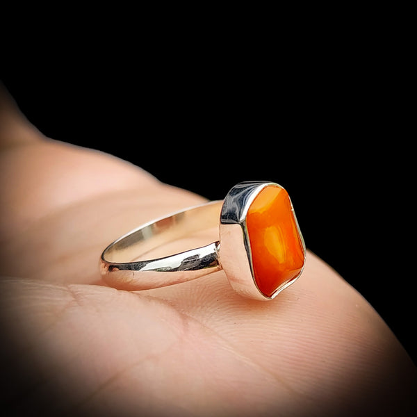 (R) Solid 925 Sterling Silver & Natural Orange Opal Irregular Handmade Ring