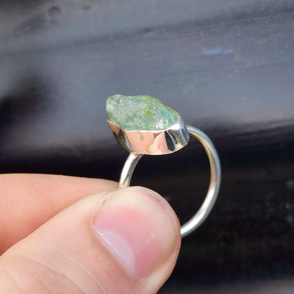 Rustic Handmade Sterling Silver & Raw Aquamarine Irregular Ring