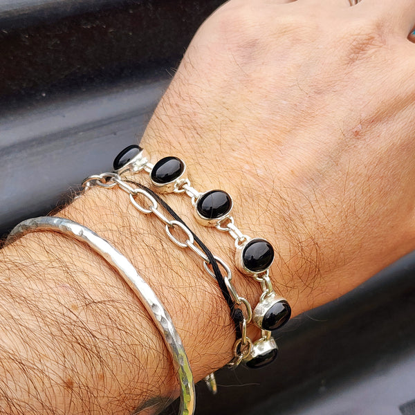 Description: Genuine solid 925 Sterling silver & natural Black Onyx handmade chain bracelet