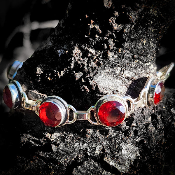 Solid Sterling Silver & Natural Garnet Handmade Chain Bracelet