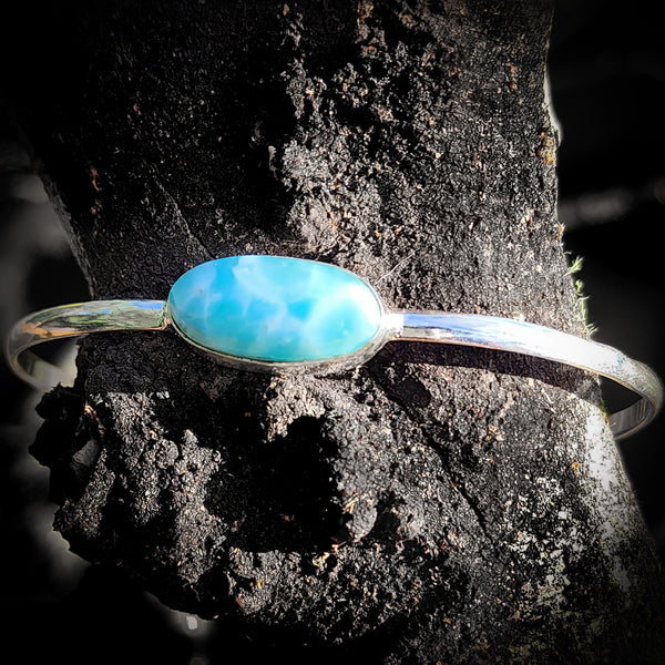 Description: Handmade solid 925 Sterling silver & natural Larimar bangle bracelet