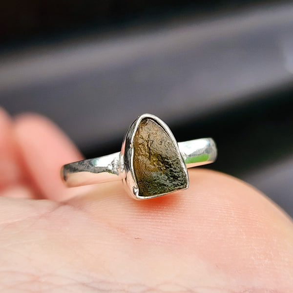 (T) Solid 925 Sterling Silver & Natural Raw Moldavite Handmade Irregular Ring