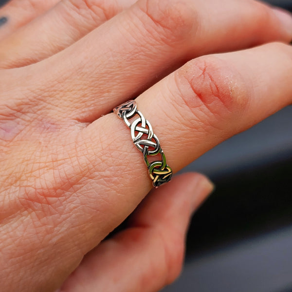 Description: Stunning genuine solid 925 sterling silver Celtic knot band ring