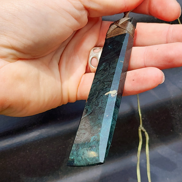 XL NZ Greenstone Pounamu Toki Pendant Necklace (N455)