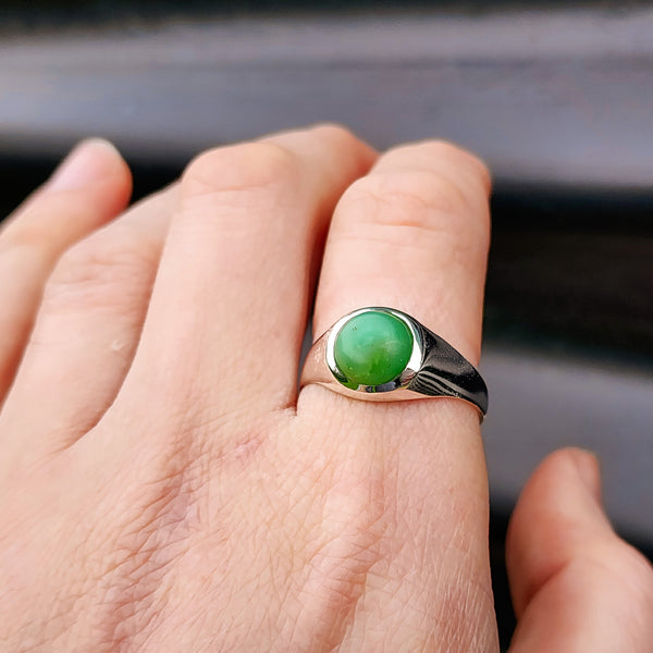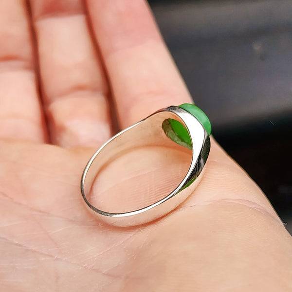 (Z) Solid 925 Sterling Silver & Natural Chrysoprase Large Signet Ring