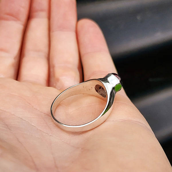 (Z) Solid 925 Sterling Silver & Natural Garnet Large Signet Ring